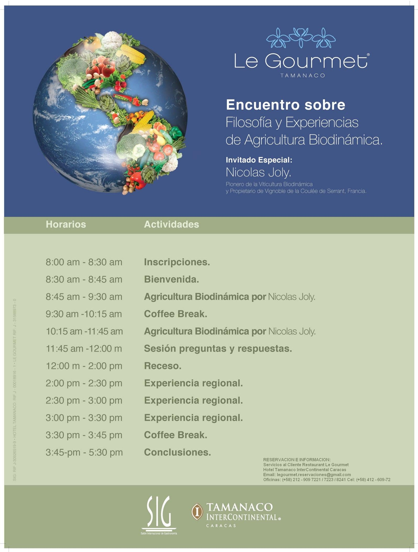 Como les mencionamos antes Le Gourmet tiene preparado para todo el día de mañana en el Hotel Tamanaco el Encuentro sobre Filosofías y Experiencias de Agricultura Biodinámica.