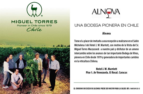 Hemos recibido una invitación con motivo de la visita a nuestro país de Miguel Torres Maczassek, Presidente Ejecutivo de Miguel Torres Chile.